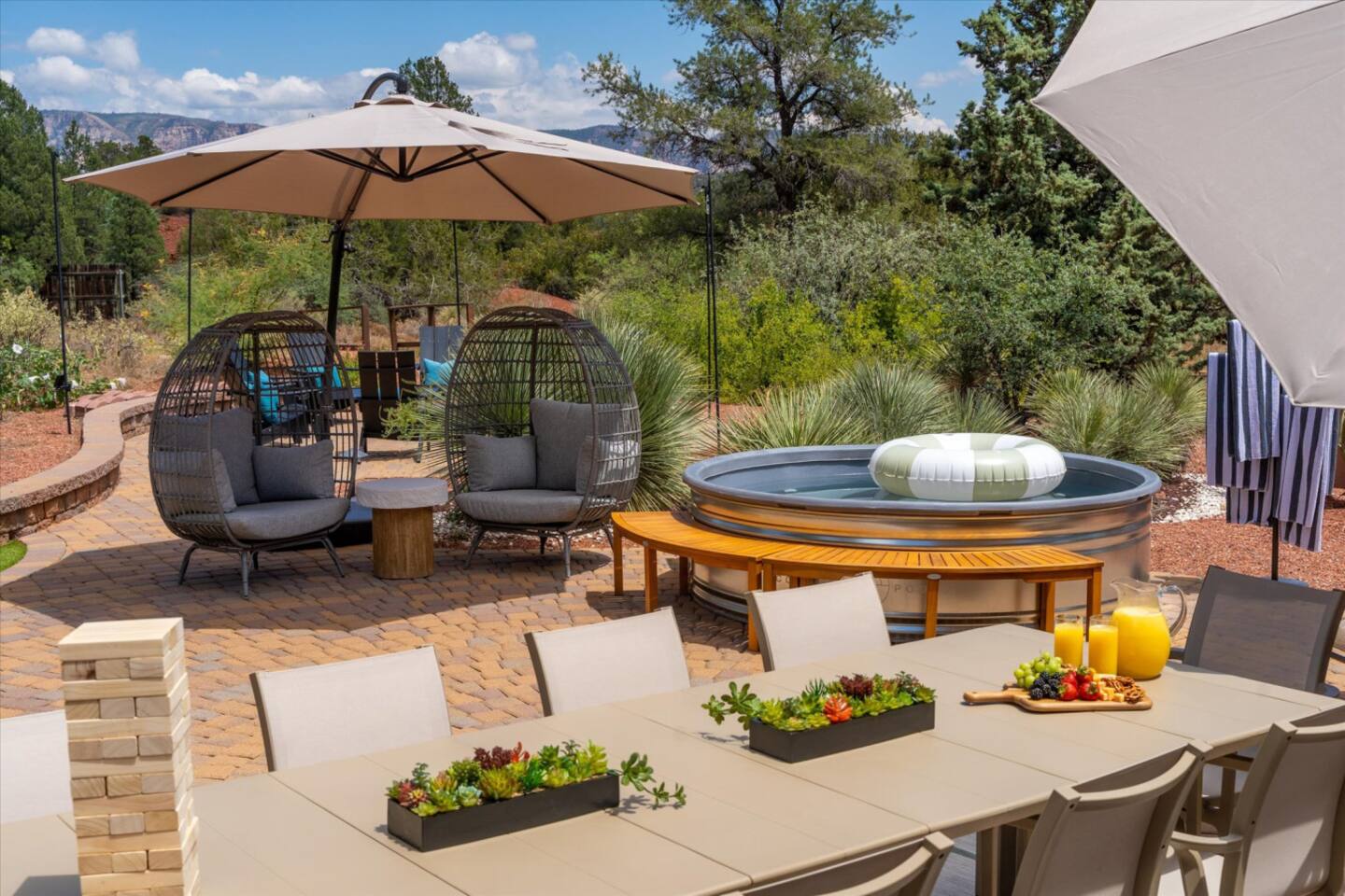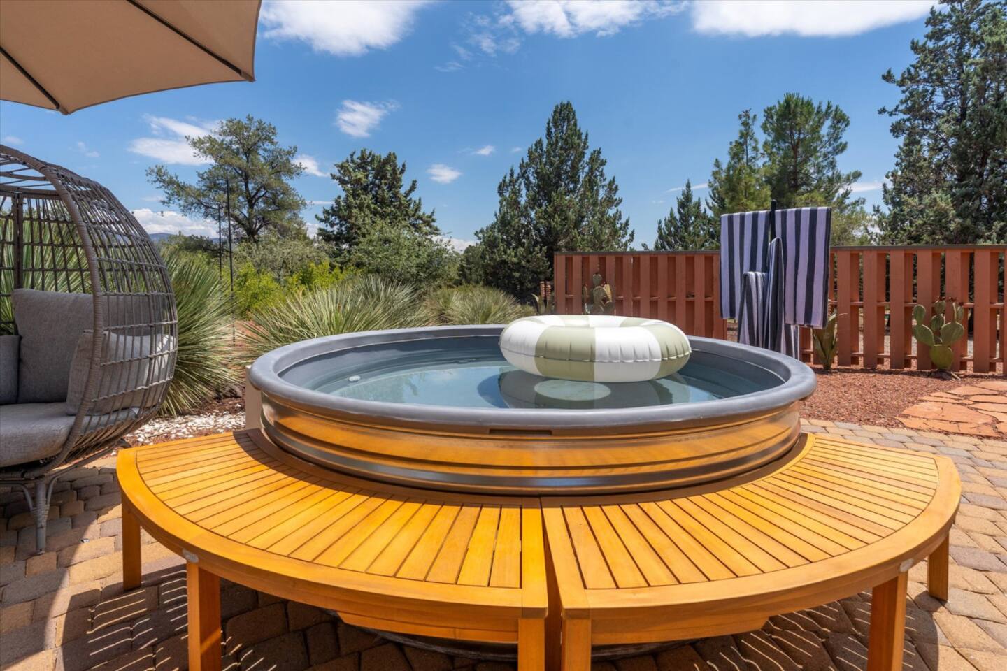 Relax with family and friends at Modern Sedona Oasis in W Sedona! Our home is located within minutes of hiking trails, mountain biking, hot air balloon rides, ATV trails, restaurants, shopping, and a wine bar! This stunning home is a true gem! You will get a warm fuzzy feeling sitting on the private patio enjoying your favorite beverage while soaking up the beautiful view of Thunder Mountain. Finish your day relaxing by starlight in our 6-person hot tub or enjoying our unique dipping pool!
