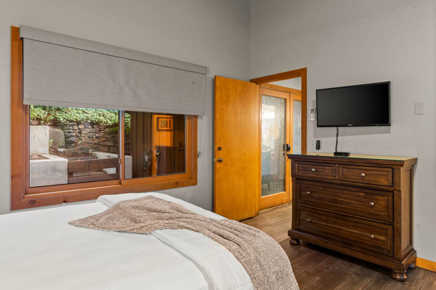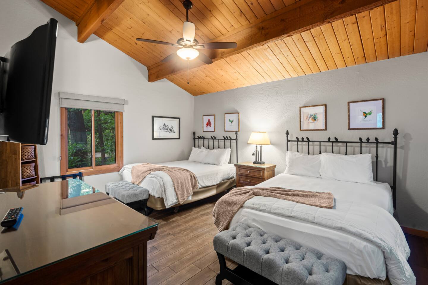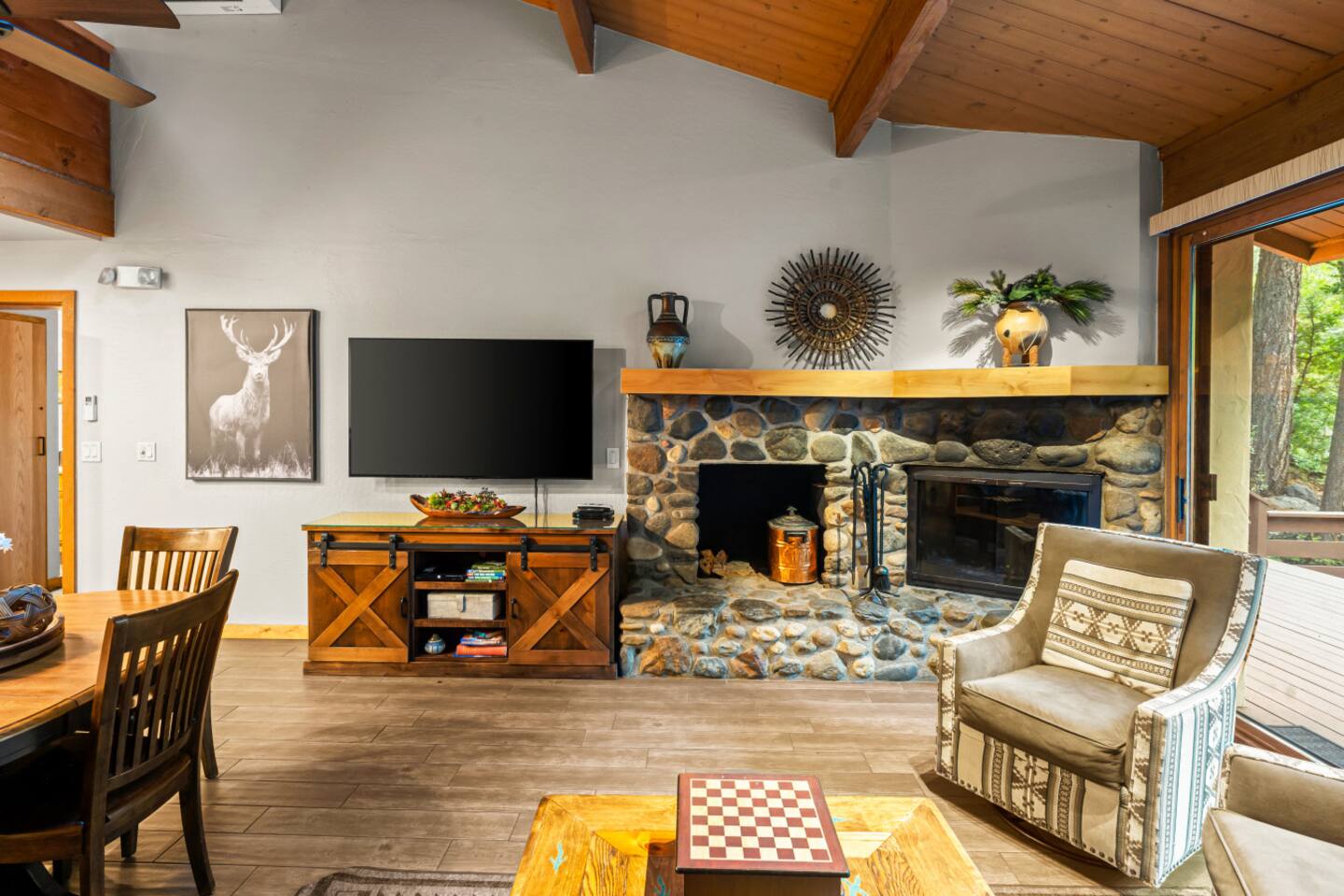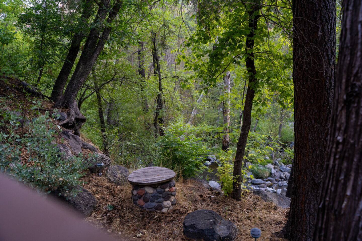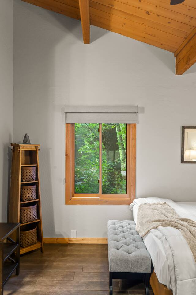 Guests have full access to the cabin, private deck, yard space, creek area, and private hiking trail. Junipine resort also has onsite EV charging stations, charcoal BBQ grills, a gazebo on the creek, and The Table Restaurant. Parking is available onsite, and check-in is contactless via a smart lock. Guest do not have access on the back deck gate. We prefer guest to utilize the public areas of the resort.