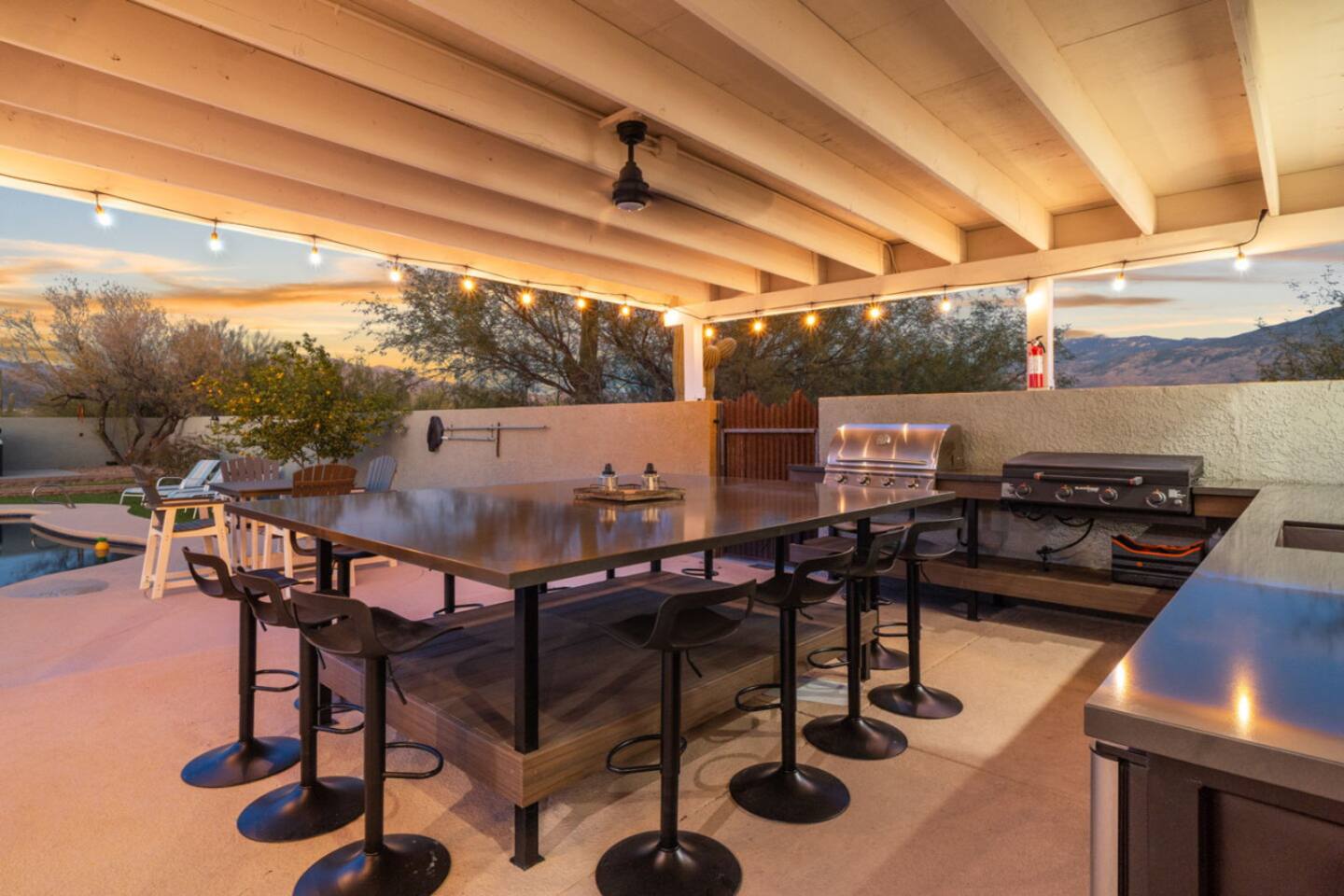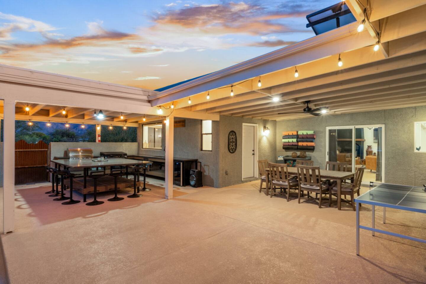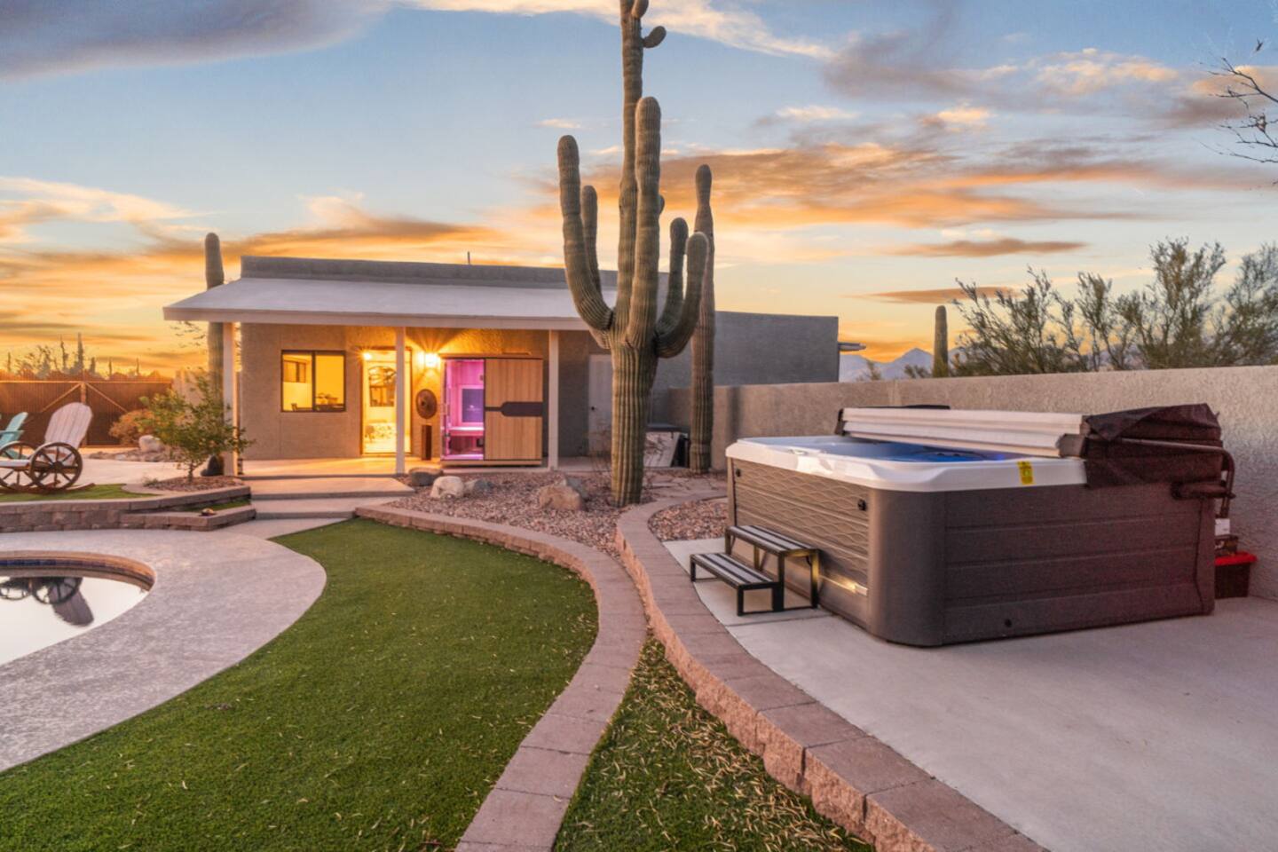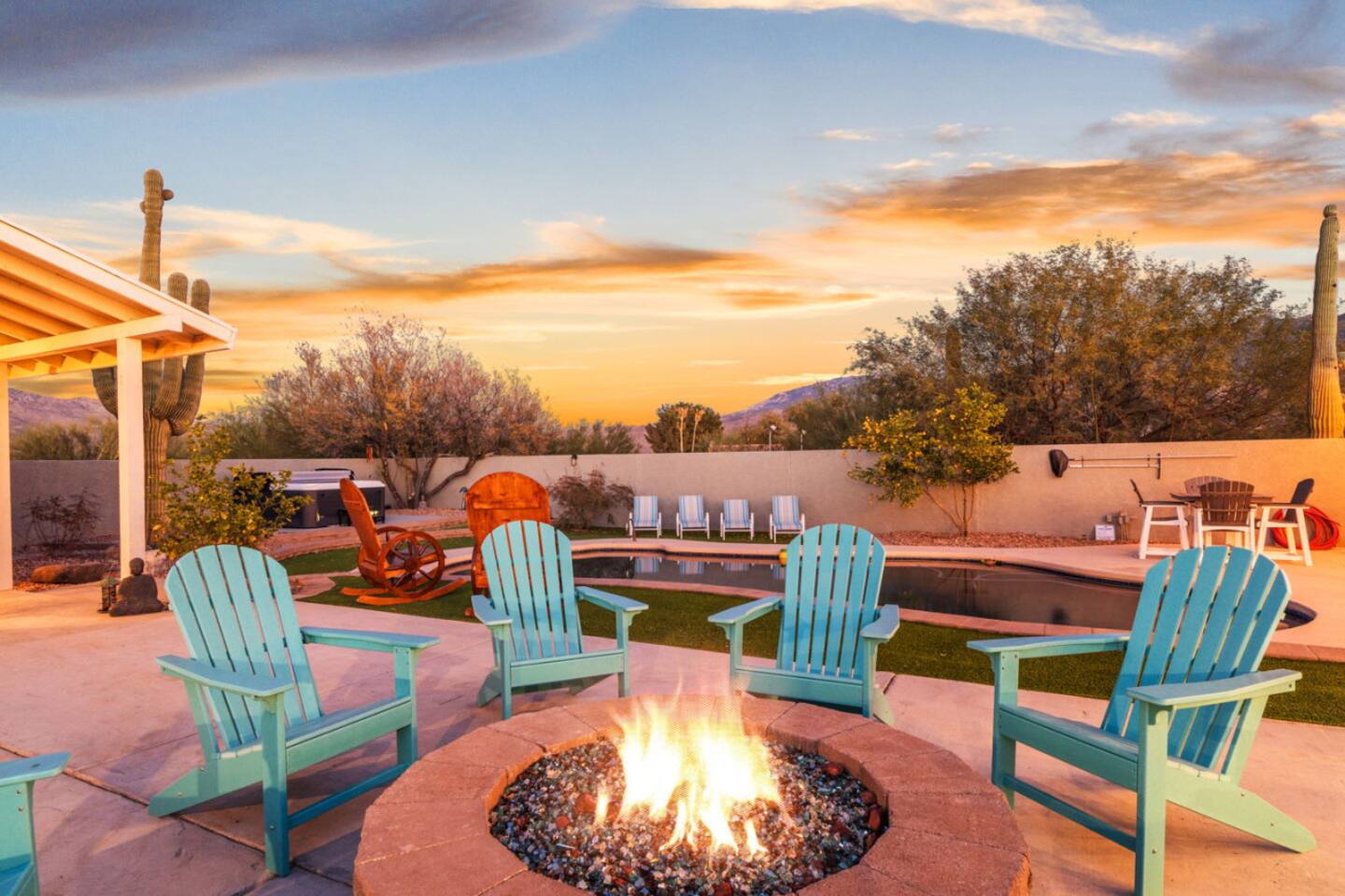 Our luxurious southwest charmer offers resort style living with all the modern amenities! Nestled in a peaceful country estate subdivision next to the Saguaro National Park, our newly remodeled home with casita spans multiple acres and has been strategically redesigned to accommodate large, multiple families and groups! Whether you are looking for a quiet sanctuary or an active adventure, we have what you need! Creating luxury vacation experiences is what we do best at Wagon Wheel Estates!
