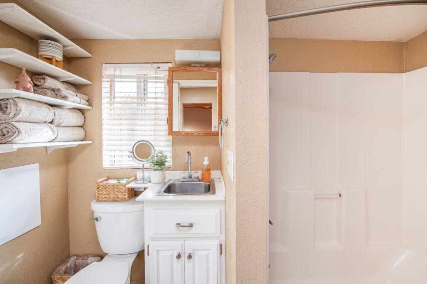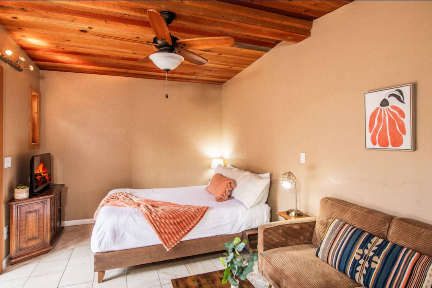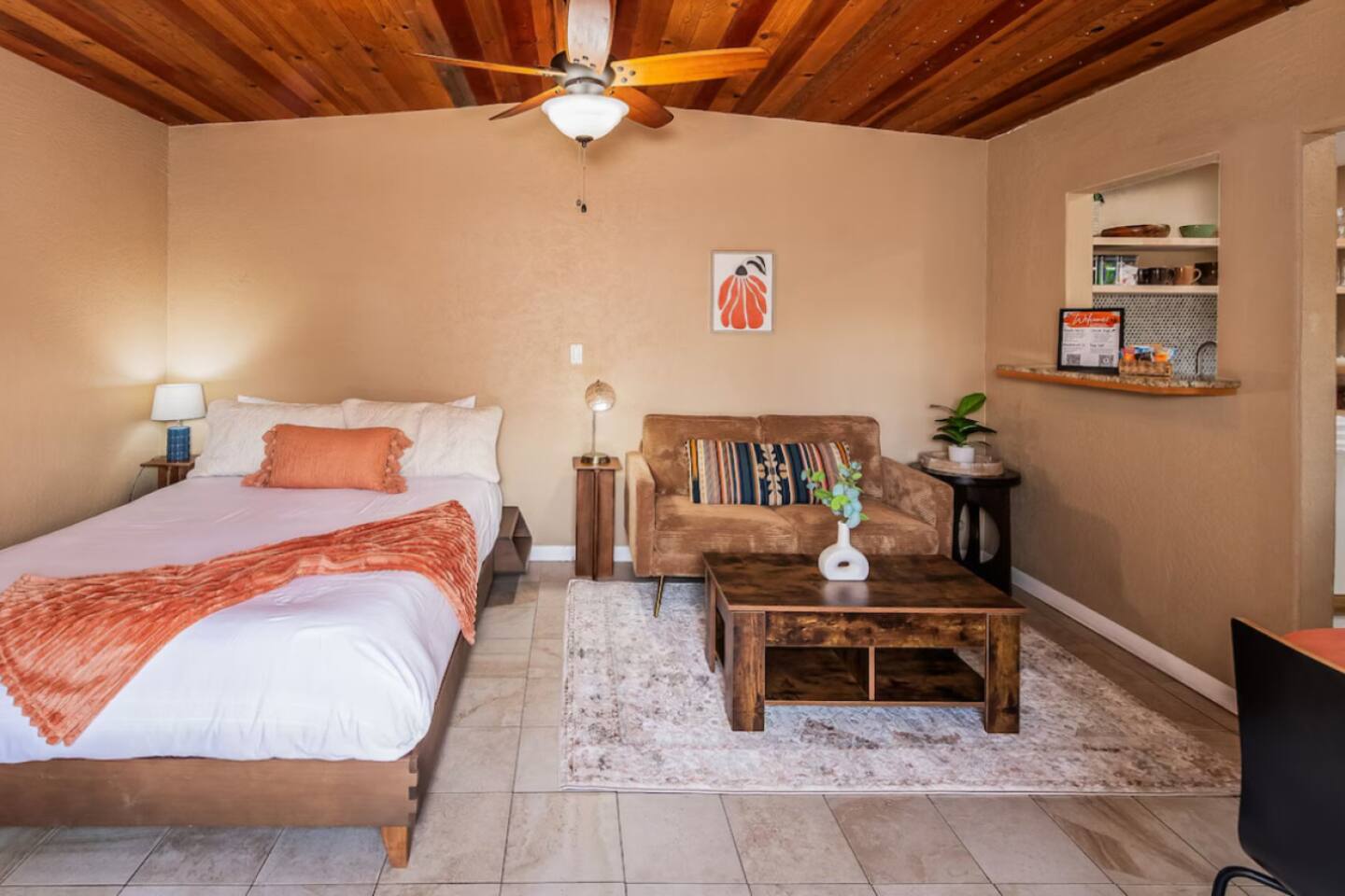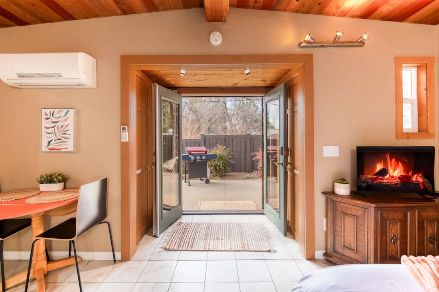Private secondary unit with separate entrance includes bath with tub/shower, kitchenette with mini-fridge, cooktop, microwave, toaster oven, living room/dining area, queen bed with memory foam mattress, & fenced patio. TV with internet stations and high-speed wifi! Walking distance to trails, restaurants, shops, bike shop, vortex trails. Really in the heart of it all!