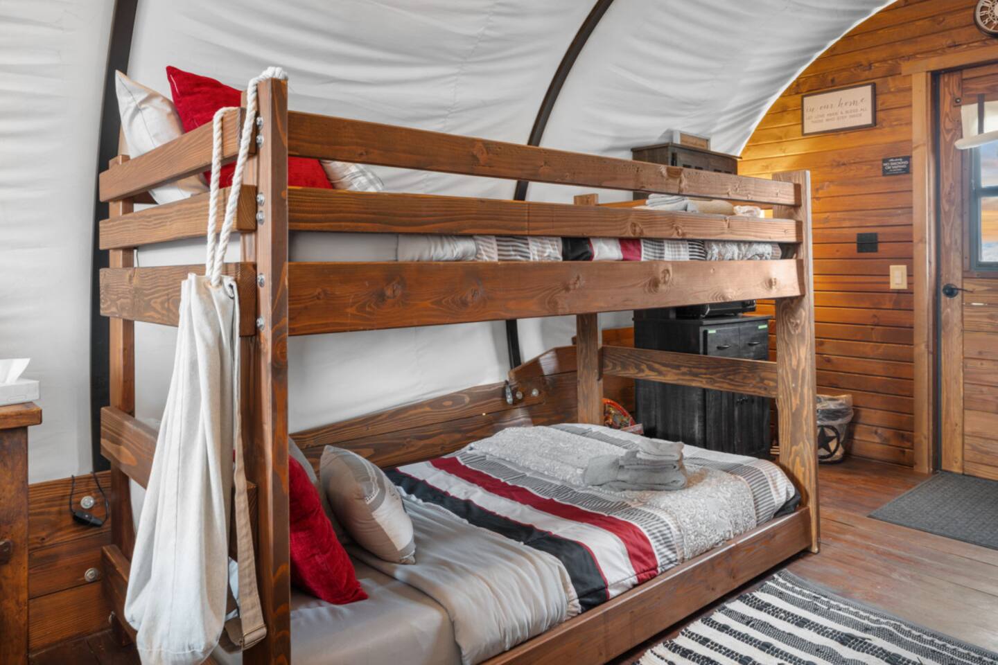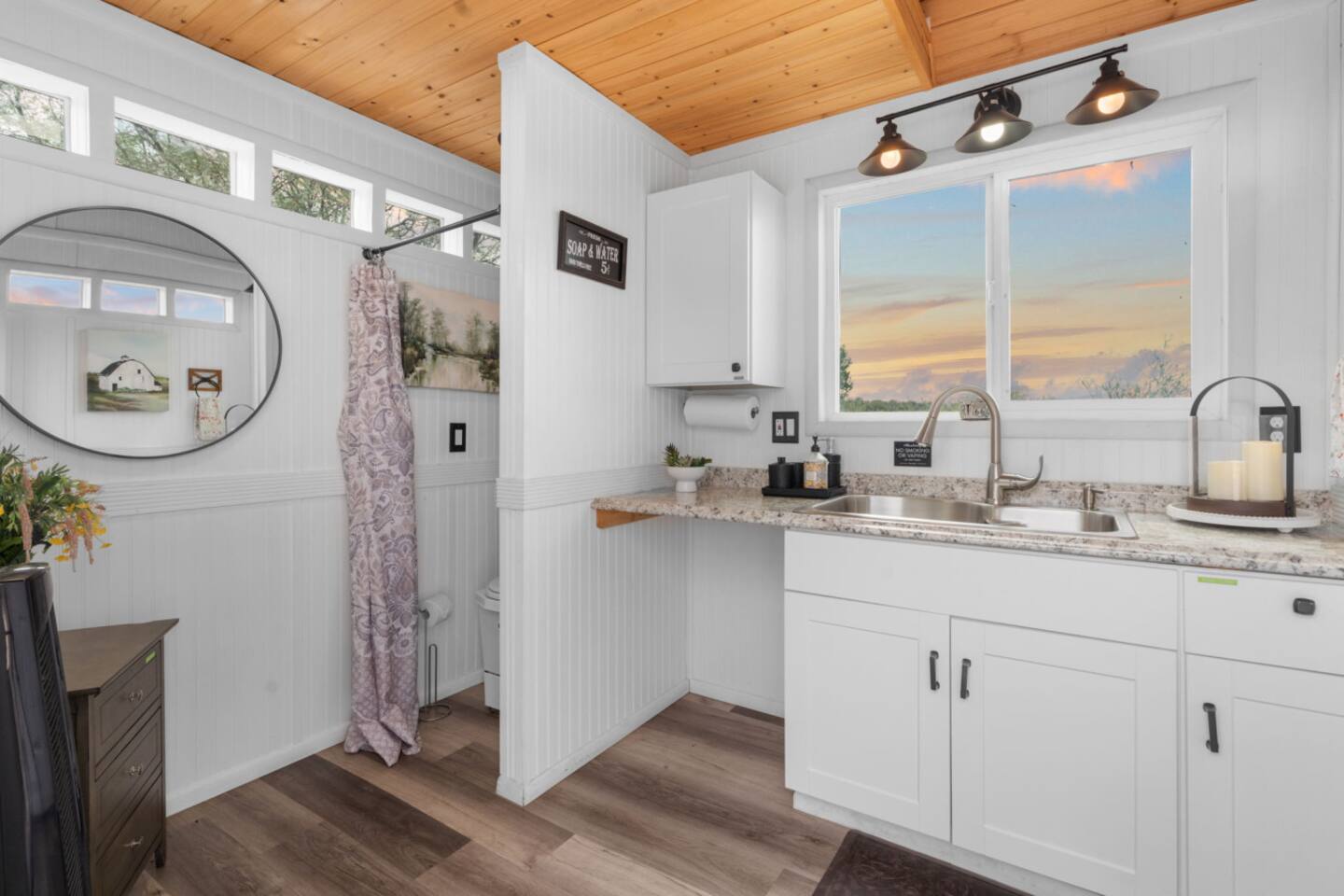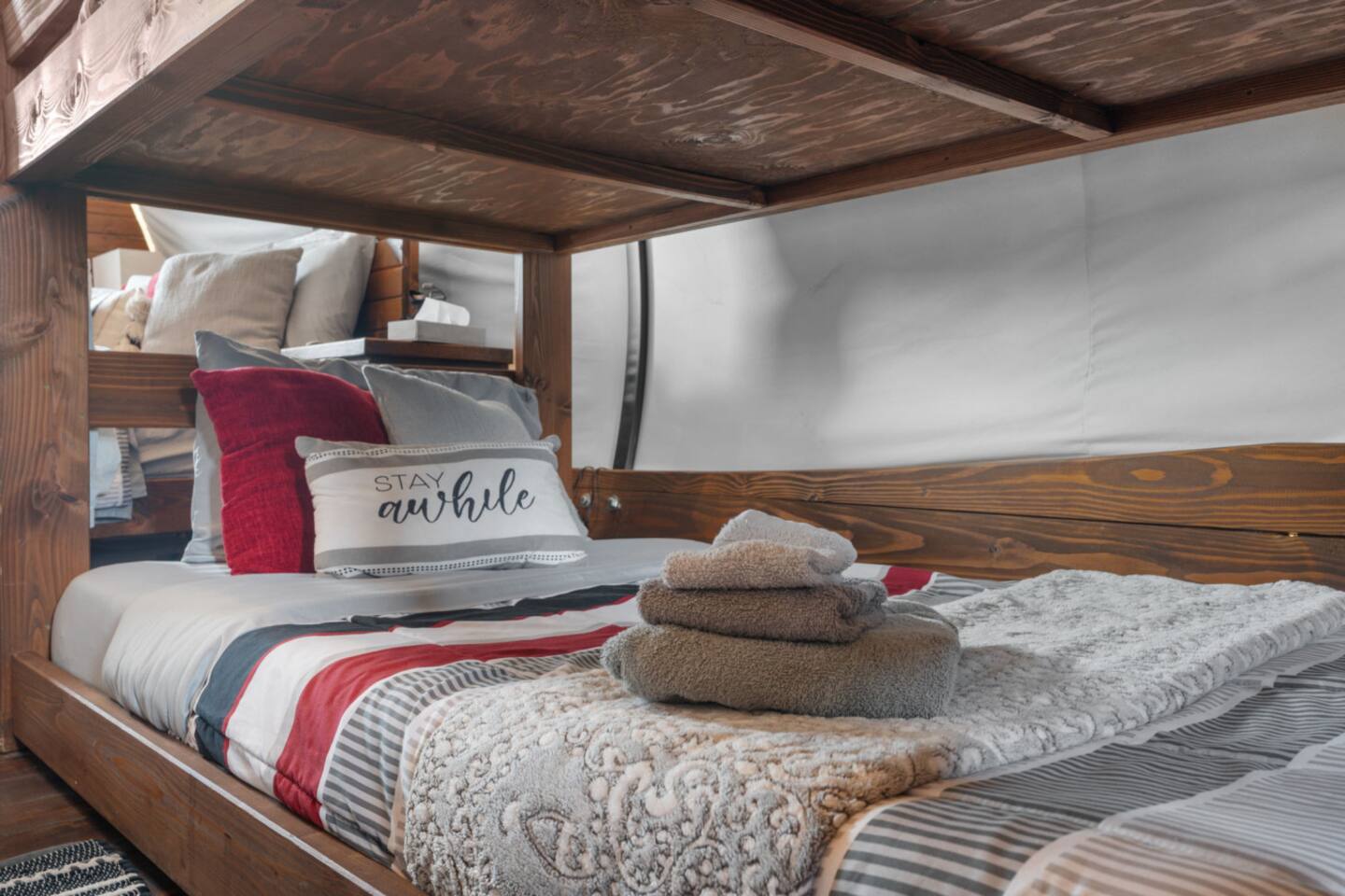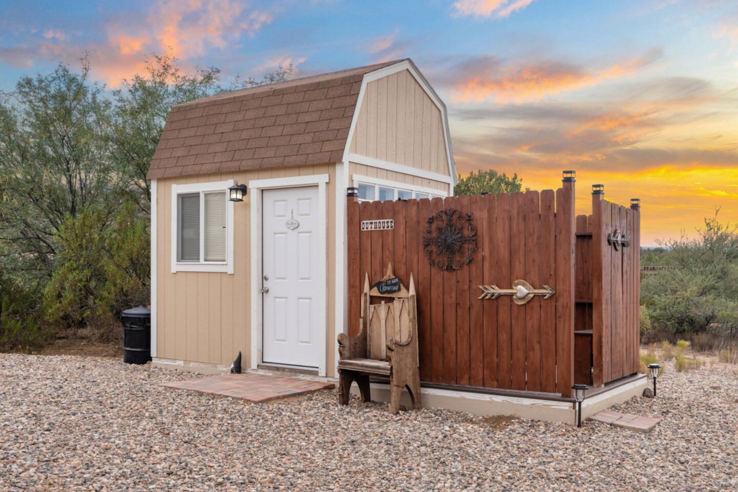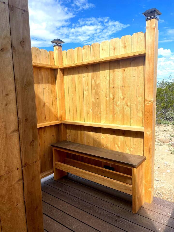 Our cozy stagecoach features a king bed and twin bunk beds, kitchenette, and beautiful patio area with a propane grill, fire pit and patio heater. Our new bath house is just a short walk from your door (les than 100 feet) and offers a eco-friendly Incinolet toilet and running water! Rinse off after a day of hiking under the afternoon sun or nighttime stars in our outdoor shower. Our brand new Rheem hot water heater is fully functional up to 140 degrees, but please note, if the temperature drops below 40 we can not guarantee the water temperature. But do not fret, the indoor plumbing is able to maintain the hot water temperature so you may always choose to clean up indoors!