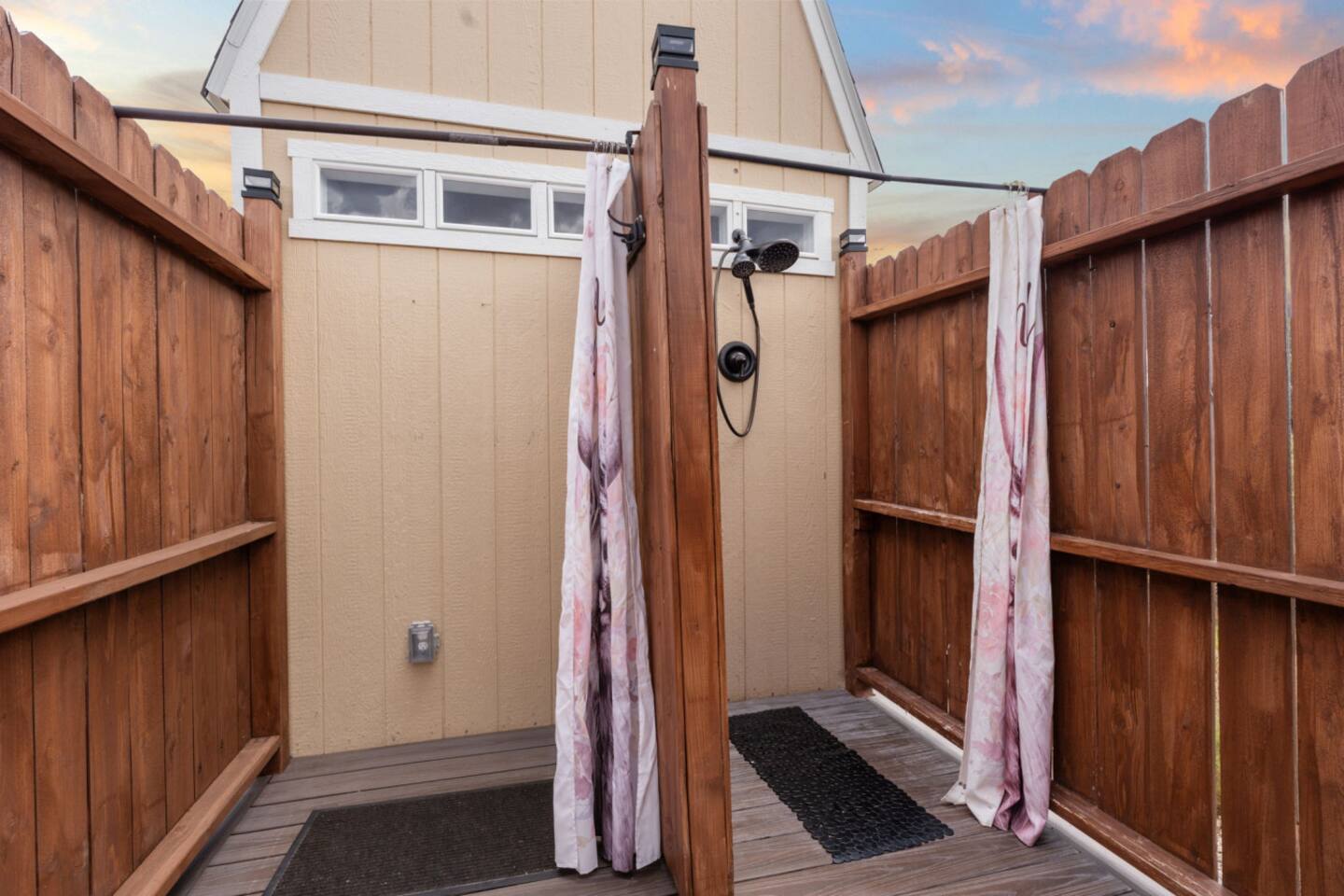 Aside from the stagecoach and private patio area, guests also have access to the hot tub, community firepit, and outdoor bathhouse. Please note, if nighttime temperatures drop below 32 degrees, the water in the bathhouse is shut off...but can be turned back on at anytime by turning the valve located under the sink back to the "on" position. This is necessary to do in order to prevent the pipes from freezing.